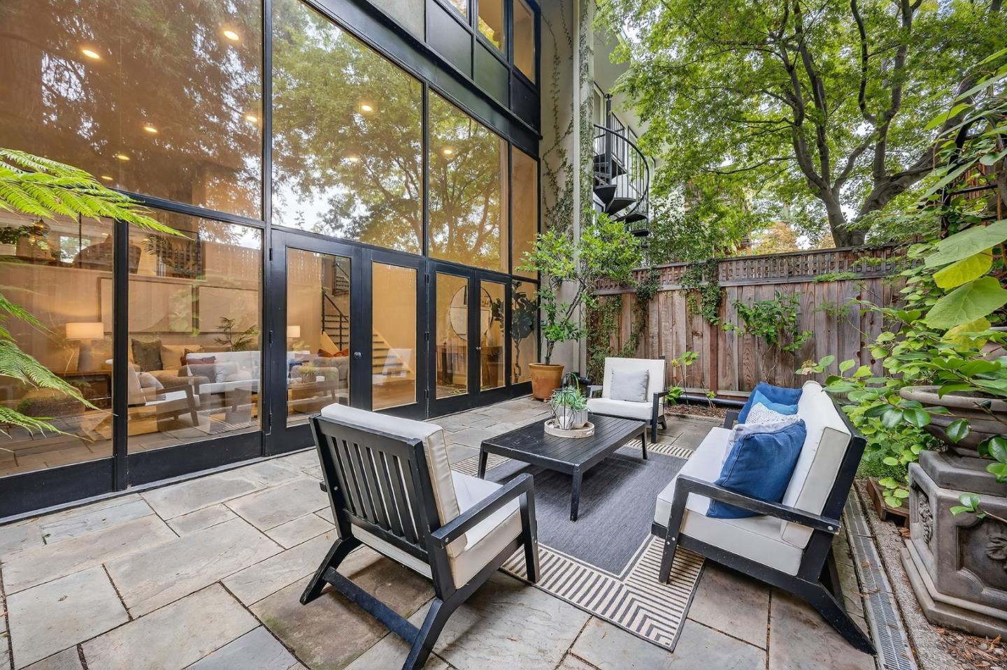 Welcome home to this impressive single family home nestled in Menlo Park neighboring Atherton! A generous open floor plan offers a perfect blend of comfort & functionality w/ soaring ceilings w/ floor to ceiling windows & doors that overlook lush redwood trees that create a sense of indoor/outdoor living. The heart of the home is a very spacious & well-appointed chefs kitchen complimented w/ stainless steel appliances w/ a 6-burner gas stove, built-in oven, wine cooler, tons of custom cabinetry, & quartz countertops w/ a breakfast bar that seamlessly integrates w/ the family room. Updated bathrooms, imported fixtures & tiles, engineered hardwood floors, double pane windows, custom railings w/ stainless steel cable railings, custom skylights, built-in speakers, central air conditioning, storage galore, a 2 car side-by-side garage, & even a community pool w/ a spacious grass area. Located within a highly desirable school district, Stanford Shopping Center, Santa Cruz Avenue, Caltrain, beautiful parks, & an abundance of stores & eateries. This one is not to miss!