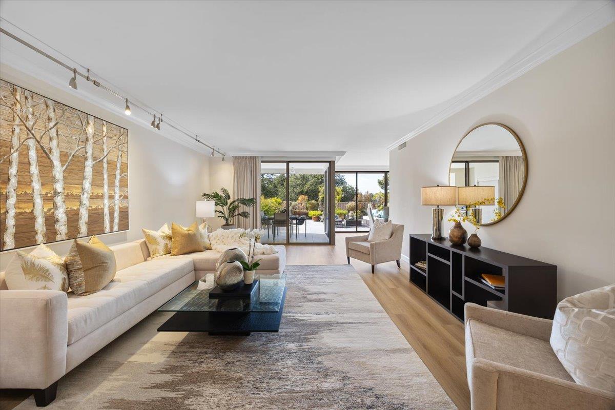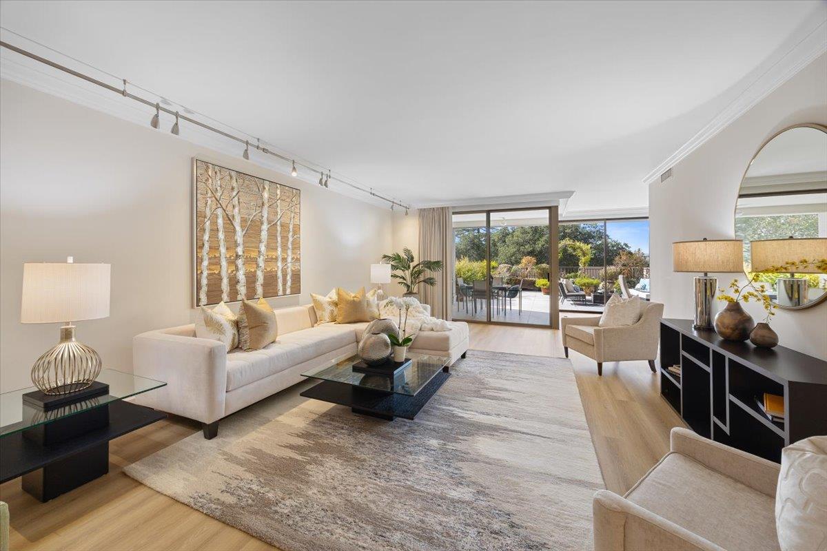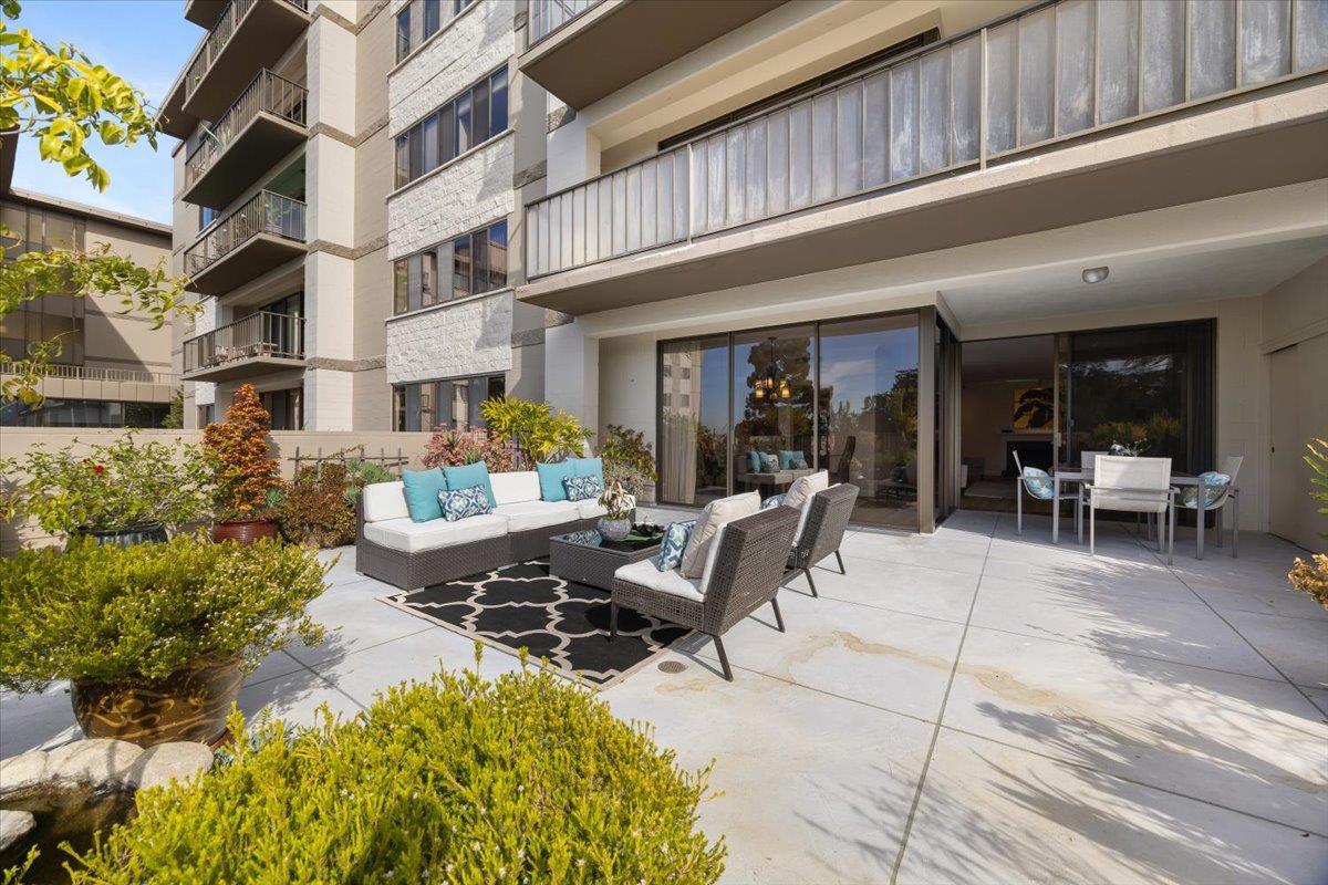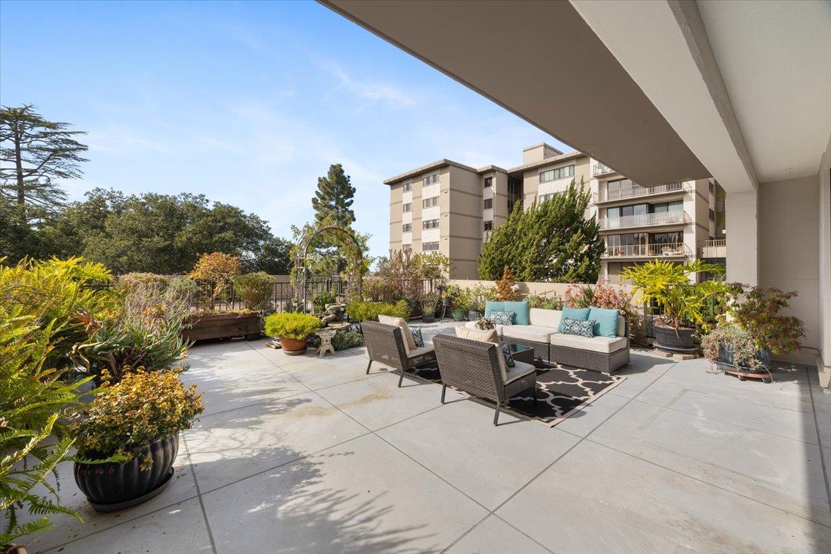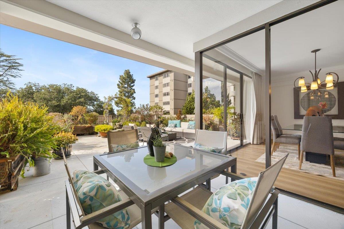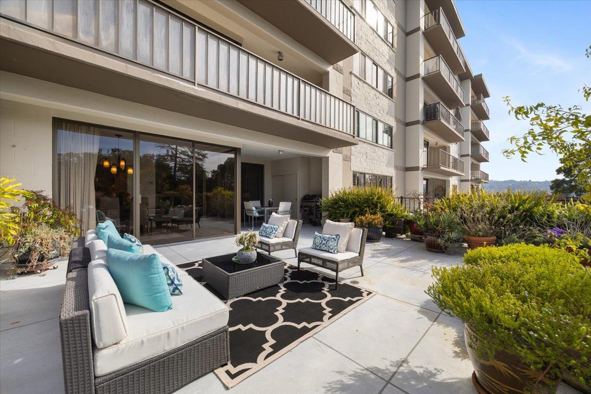 Welcome to this spacious 2BR/2BA unit at the prestigious Top of the Mounds in the heart of San Mateo. This home is one of only 5 with an expansive oversized terrace, providing tranquil view of the surrounding greenery. Tastefully updated and freshly painted with brand new flooring and carpet, this condo is move-in ready. The spacious and open floor plan consists of a generously sized Living Room and adjacent dining room, both opening through sliding glass doors to the oversized terrace. The Kitchen features stainless steel appliances, granite countertops and a pantry. Two large bedrooms also feature green views, and each has multiple large closets. The spacious floorplan also features two bathrooms and an in-unit laundry room. Two car tandem parking. The Top of the Mounds complex features several amenities, including a pool, gym, sauna, clubhouse, and guest suites. Top of the Mounds is located just minutes away from downtown San Mateo with excellent restaurants, shops and entertainment.